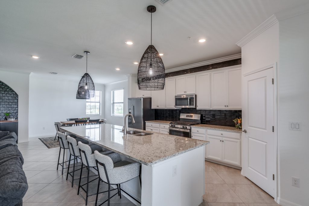 Step inside to an expansive open layout that welcomes you with warmth and style. A built-in buffet wall adds a touch of modern elegance to the main living area, while the chef-inspired kitchen is a true showpiece , complete with stainless steel appliances, an oversized islandgas cooktopsleek  countertops, and a tile backsplash extending to the ceiling.